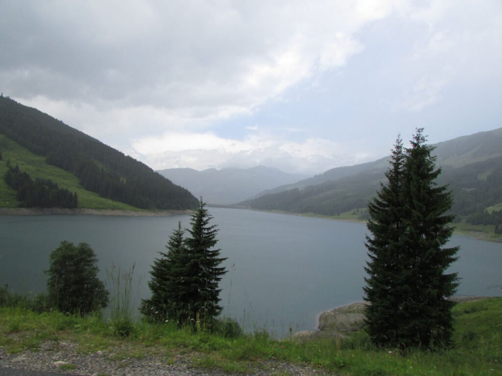 Op de terugweg heb ik een deel van de rijtoer voor mijn rekening genomen. We meenden onderweg een hapje te eten in het restaurant bij het stuwmeer Durlassboden. Nu een meer dat vol met water staat, maar we hebben een paar jaar geleden aan zijn oevers gestaan en gekeken naar een lege vlakte.