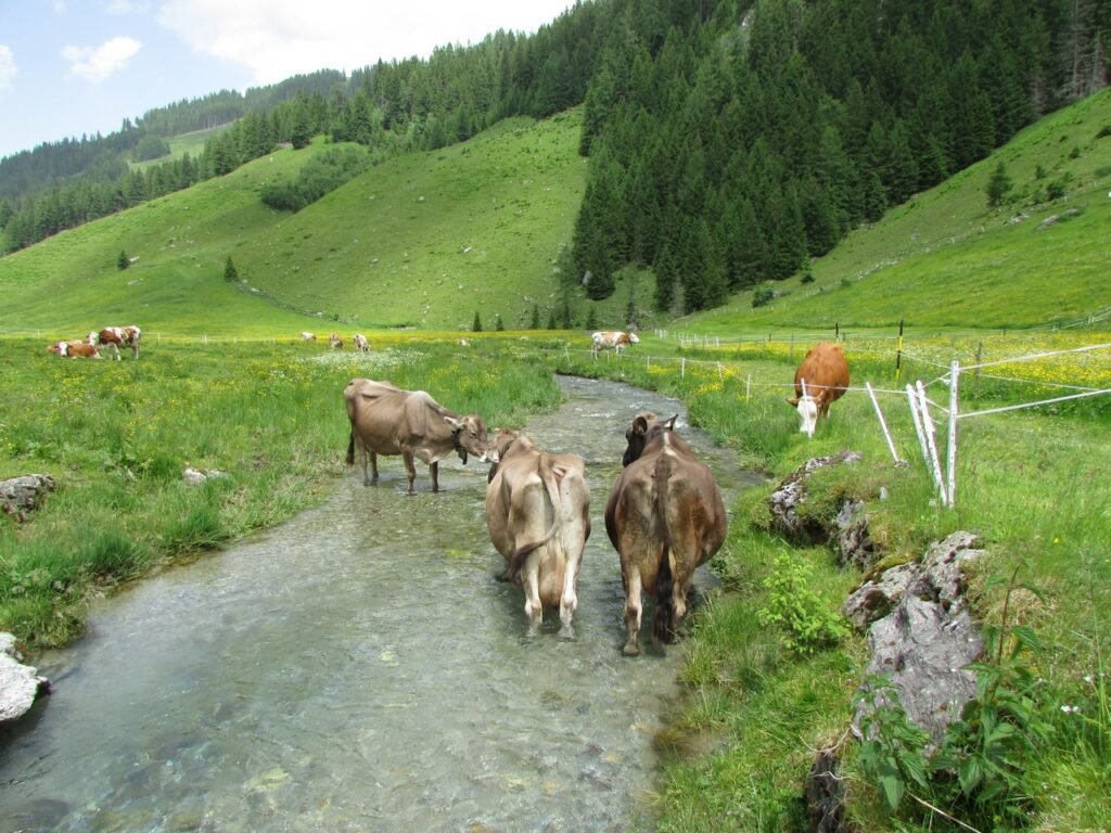 De parkeerplaats voor de Wimmertalalm ligt op een steenworp afstand van die voor de het Jausen Station Schwarzachtal, de tocht van gisteren. Toch liggen beide almen in aparte dalen.